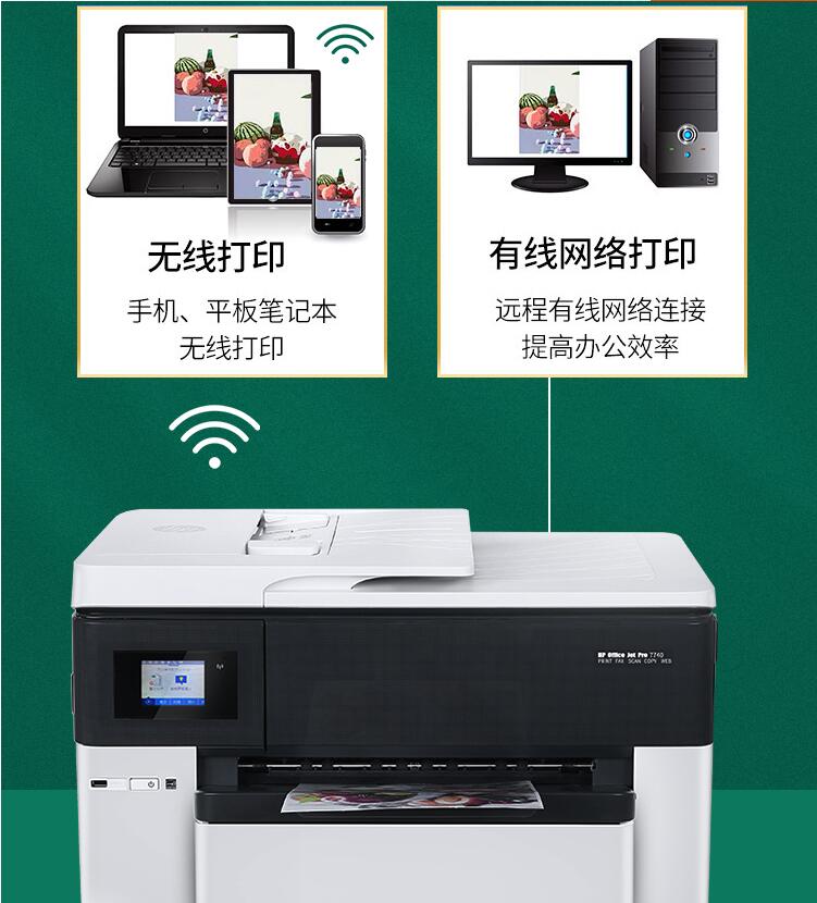 惠普A3彩色照片打印機(jī)復(fù)印一體機(jī)7740噴墨自動(dòng)雙面A4辦公家用無(wú)線